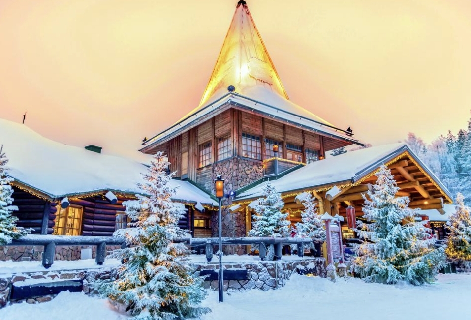 Zabluda je, kažu Finci, da Deda Mraz  živi na severnom polu, a i svi znamo da gore na „nultoj tački“ baš niko ne živi… Tačno je da živi „u blizini Severnog pola“. Manje ili više, oko 2.000 km odande :), u Laponiji. U pitanju je dobro poznato Deda Mrazovo selo (zabavni park) u blizini grada Rovaniemi, glavnog grada provincije Laponije (Lapland). Deda Mrazovo selo je smešteno na samoj polarnoj granici (na rubu Arktičkog kruga) a Finci ga zovu “Vrata Laponije”. Selo Deda Mraza, zahvaljujući svojoj poziciji na polarnoj granici, ima vrlo neobične klimatske uslove i atmosferu koja je gotovo nestvarna. Tamo sunce zimi ne izlazi barem jedan dan, a leti barem jedan dan ne zalazi. Polarna noć tamo traje gotovo mesec dana, od sredine decembra do početka januara, dok leti sunce ne zalazi od sredine juna do početka jula. Ovde, u spiljama i pećinama Laponije, duboko pod zemljom se, prema legendama, nalaze i radionice u kojima Deda Mrazovi pomoćnici: patuljci i vilenjaci, tokom cele godine prave igračke koje će Deda Mraz podeliti uoči Nove godine ili Božića, kako gde. Osim „Igre svetlosti“, „Belih noći“, „ponoćnog sunca“ te čarobnih severnih gustih šuma i „ušate planine“, za Laponiju su karakteristični i prizori krda irvasa i čopora sibirskih haskija. U Selu Deda Mraza i njegovoj okolini irvasi i haskiji vuku sanke Deda Mraza a posetioci uživaju u gotovo nestvarnim prizorima. Naročita atrakcija je, kada se nađete u Deda Mrazovom selu, odlazak na rub  arktičkog kruga tj. prelazak „polarne granice“ jer, kažu „ tada prelazite s kraja sveta na njegov početak“. Samo selo Deda Mraza je tek fenomen za sebe. Sagrađeno je u laponskom etno stilu po projektu finskog udruženja arhitekata „Arrak Group“ sa drvenim kućicama – brvnarama. Selo je posebno dekorisano hiljadama svetlucavih lampiončića, zvončićima i praporcima koji kreiraju tj. dodatno pojačavaju praznični ugođaj. U selu se nalazi i čuvena kancelarija Deda Mraza u kojoj uvek možete da potražite pravog pravcatog Deda Mraza. U selu se, takođe, nalazi i pošta u koju stižu hiljade pisama dece iz celog sveta. Deda Mraz u svojoj kancelariji odgovara na ova pisma i prima posetioce koji mogu da mu sednu u krilo i šapnu svoje novogodišnje želje.
